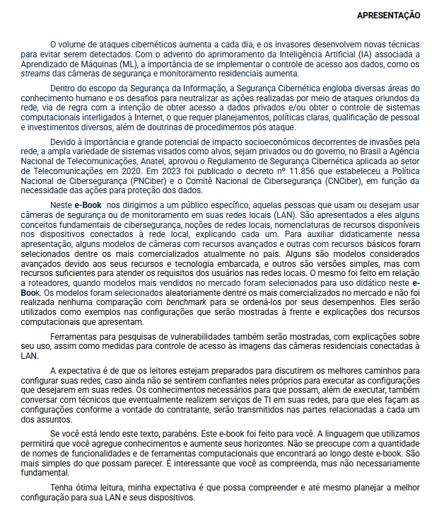 Este e-Book é destinado a pessoas leigas que desejam conhecer e até implementar elas próprias um sistema de monitoramento e segurança eficiente por câmeras.